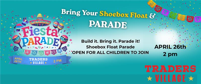 ๐ Fiesta Shoebox Float Parade at Traders Village! ๐ Get ready for a fun, creative Fiesta event the whole family will love! Kids can design their own shoebox float and…